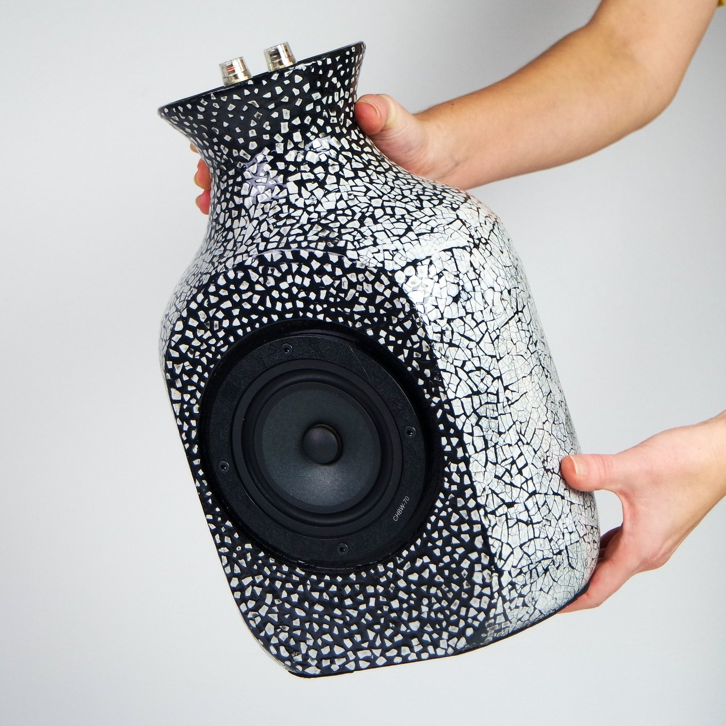 A fusion of Vietnamese lacquerware tradition and modern audio design, this bookshelf speaker embodies multifunctionality. Crafted with bamboo, MDF, and lacquer finishes, it integrates a 5" woofer within a vase form. The project reflects cultural collaboration, material exploration, and design as both ornament and sound.