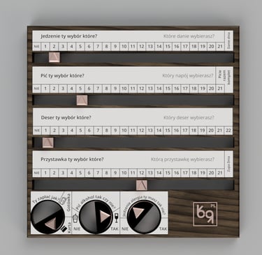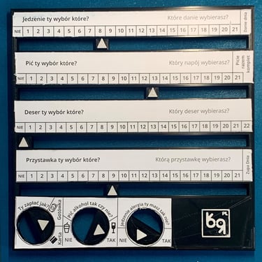A tactile plate with sliders made from high-end materials, which enables deaf clients to communicate their orders and payment preferences to waitstaff easily. It was created with the polish deaf community and improves their dining experience and helps them enjoy luxury experience without communication barriers.